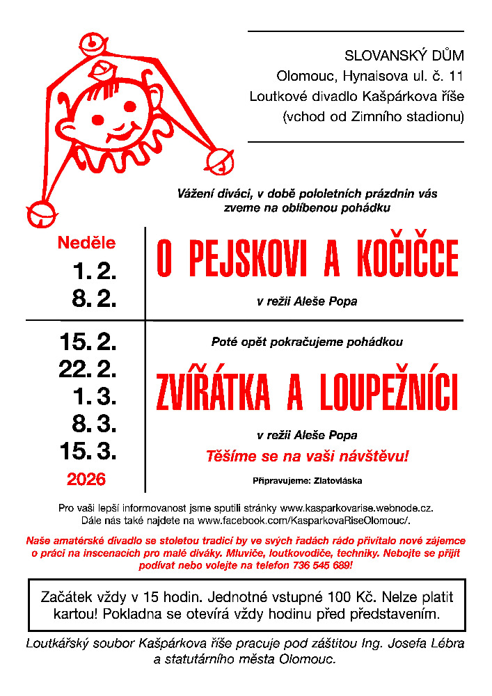 Vstupenky si můžete zarezervovat na telefonním čísle Slovanského domu 585 417 966 nebo 736 545 689 (vždy do neděle 13.hodiny).